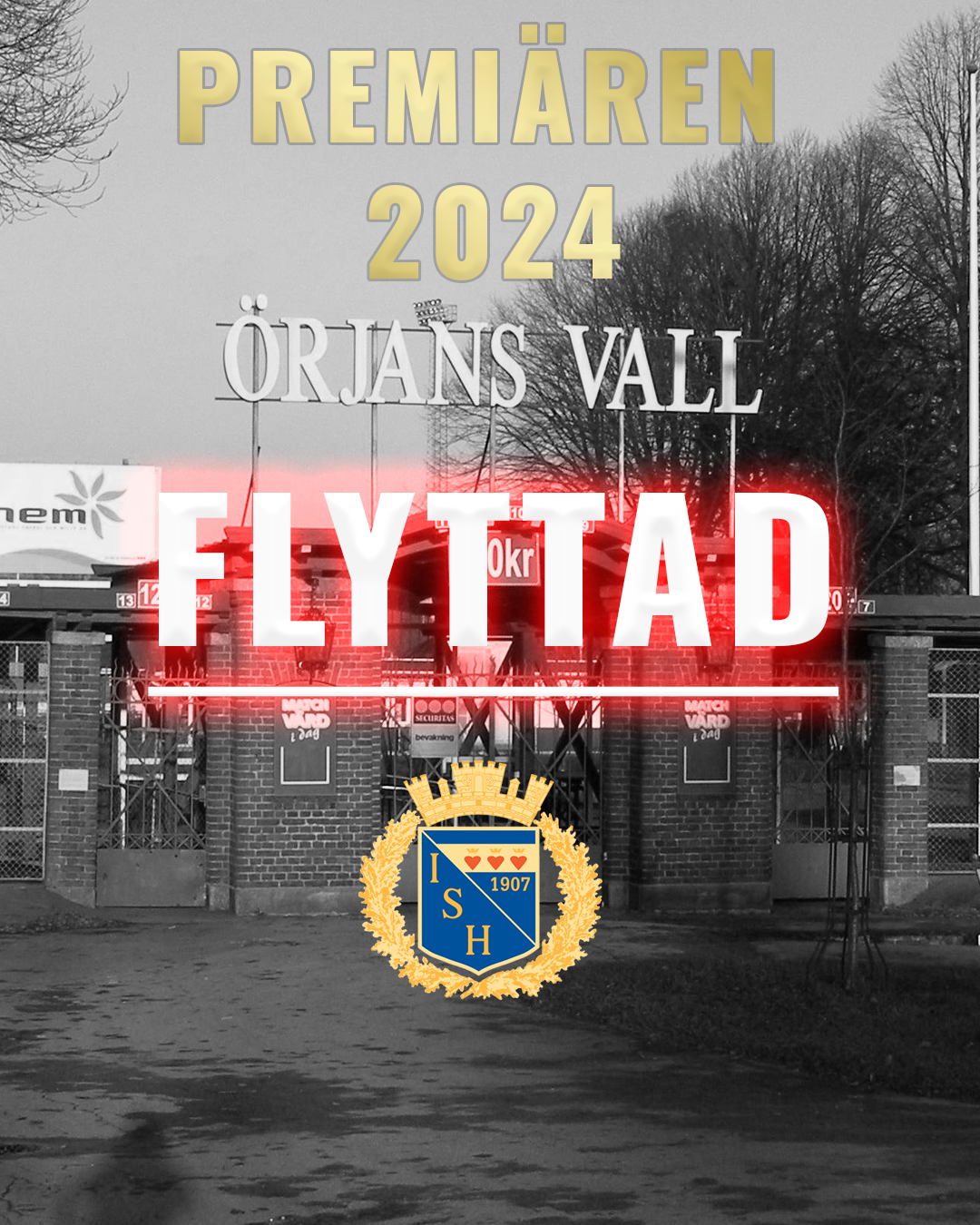 Premiärmatchen mot Gislaveds IS var från början tänkt att spelas den 6 april. Då det den 7 april skulle genomföras en allsvensk match på Örjans vall valde vi att flytta premiären till den 10 april för att kunna genomföra den hemma på Örjan. Nu kan vi tyvärr konstatera att premiären på Örjan inte blir av. Halmstads kommun meddelar att gräset inte är speldugligt och att åtgärder ska vidtas under veckan. Därför tvingas vi återigen flytta en match till Halmstad Arena. Vi hoppas att Örjans vall får den omsorg och behandling som arenan förtjänar så att vi kan komma hem igen.